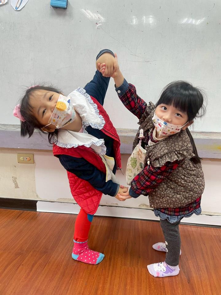 用肢體動作表演出奶油花的樣子~發揮創意自由展現