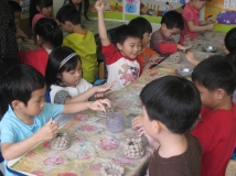 依據教育專家J.Bruner的螺旋課程理念規劃系統性的學習主題 由故事繪本出發,橫向統整與縱向連貫的主題課程深化美學、音樂、科學、人文、人際、禮儀、常規等各領域,並在學習過程中複習上次所學,並帶入下次課程,強化幼兒學習、加深印象。
