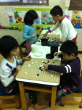從玩樂中學習,在棋盤的世界裡黑與白就像是與非,可以增加孩子思考能力又可以訓練其耐心,這些方式剛好讓孩子學習同儕相處模式,讓幼兒腦力激盪後有所成長